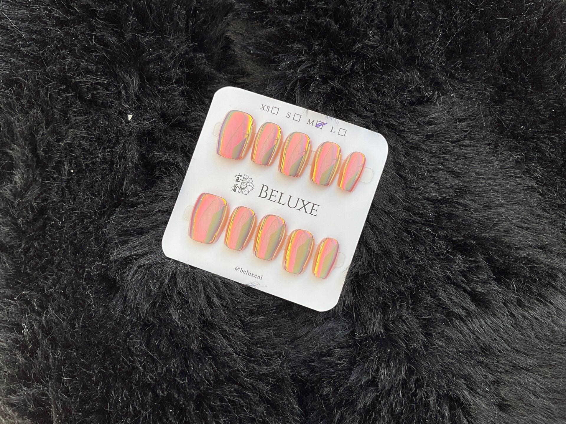 Let op: Handmatige metingen kunnen lichte afwijkingen vertonen. Handgeschilderde nagelkunst kan kleine verschillen vertonen tussen elke set.